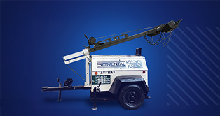 Torres móveis, com mastro extensível de até 9m e motor Lester. Garante iluminação de alta performance, mesmo em locais remotos.
